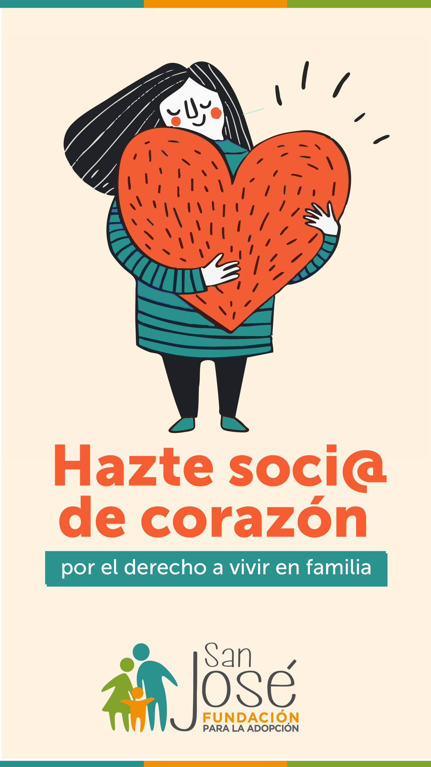 Desde hace más de 30 años, Fundación San José para la Adopción acoge y acompaña a niños y niñas, mujeres en conflicto con su embarazo, familias de origen y en proceso de adopción, mediante el trabajo de profesionales especializados e incidiendo en políticas públicas, con el firme propósito de que todos los niños y niñas crezcan en el amor y cuidado de una familia.